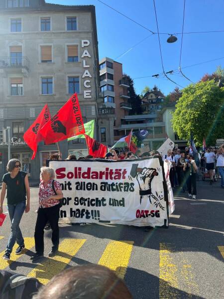 Kürdistanlılar ve Türkiyeli devrimci örgütler de yürüyüşte kortej oluşturdu. Kürdistanlılar, Önder Apo’nun büyük boy posteriyle yürüyüşe katıldı. Kitle uzun bir yürüyüşün ardında kitle Sechseläutenplatz‘a ulaşan kitle bir miting yaptı. Mitingde, komite adına ortak bir açıklama yapıldı.
