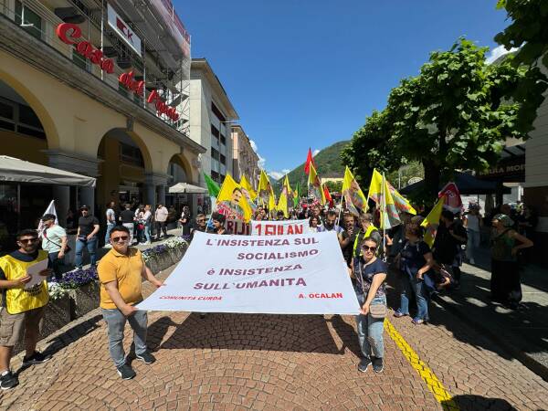 Bellinzona kentindeki kutlamalar, merkez tren istasyonu önünden başlayarak Kanton Parlamentosu önüne yapılan yürüyüşle devam etti. Kutlamalara katılan Kürdistanlılar, Abdullah Öcalan’ın “Sosyalizmde ısrar insan olmakta ısrardır” sözünün yer aldığı İtalyanca pankart taşıdı. Kitle sık sık “Hepimiz PKK’yiz”, “Jin, jiyan, azadî”, “Bijî Rojava” ve “Bijî 1 Gulan” sloganları attı. Meydanda direniş şarkıları eşliğinde halay çekildi.