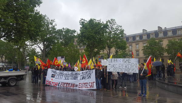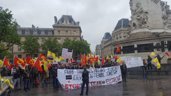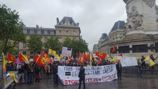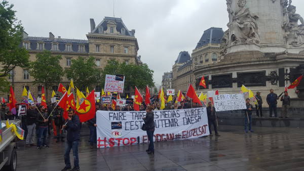 Fransa Demokratik Kürt Konseyi’nin (CDK-F) çağrısıyla saat 16.00'da République Meydanı’nda yapılan mitinge yüzlerce Kürdistanlı katıldı.