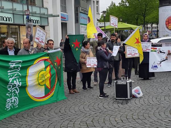 Almanya’nın Bielefeld kentinde de Kürdistanlılar Ronahî TV, Stêrk TV ve News Channel’in yayınlarının kesilmesi karanı protesto etti.