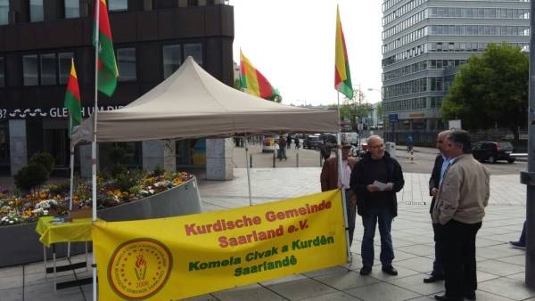 Almanya’nın Saarbrücken kentinde Fransız şirket Eutelsat’ın Stêrk TV, News Channel ve Ronahî TV’nin yayınlarını kesme kararına karşı bilgilendirme amaçlı iki günlük çadır açıldı.