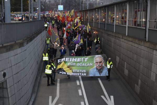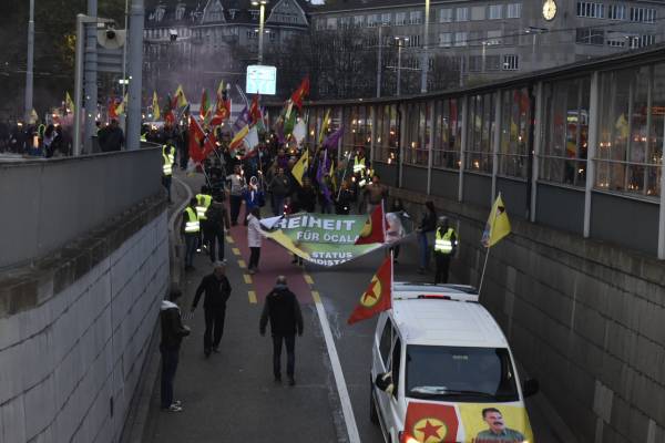 İmralı Adası’nda 19 yıldır tecrit altında tutulan Kürt Halk Önderi Abdullah Öcalan’a yönelik 9 Ekim 1998 yılında yapılan uluslararası komplo Zürih’te gerçekleştirilen Meşaleli yürüyüşle protesto edildi.