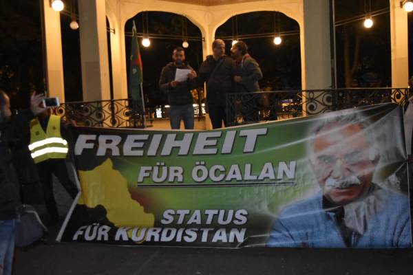 ‘Serok Apo azad bike, Kurdistan azad bike, jiyanê azad bike’ şiarıyla bugün Platzpromenade alanında bir araya gelen yüzlerce Kürdistanlı ve dostları gerçekleştirdikleri yürüyüş ve mitingle 9 Ekim komplosunu protesto etti. Öcalan’a özgürlük pankartı, Öcalan posterleri, Ciwanên Azad, PKK, YPG, YPJ bayraklarının taşındığı sık sık “Biji Serok Apo”, “Bê Serok Jiyan Nabe” sloganlarının atıldığı yaklaşık 2 saat süren meşaleli yürüyüş Bellveu meydanında gerçekleştirilen mitingle sonlandırıldı.
