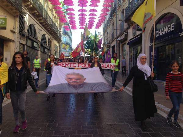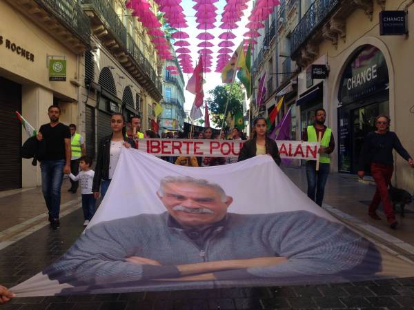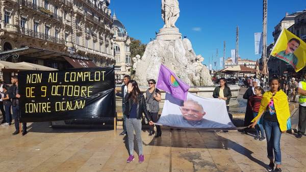 Güney Fransa'nın Montpellier kentinde, Kürt Halk Önderi Abdullah Öcalan’a yönelik Uluslararası 9 Ekim Komplosu protesto edildi.