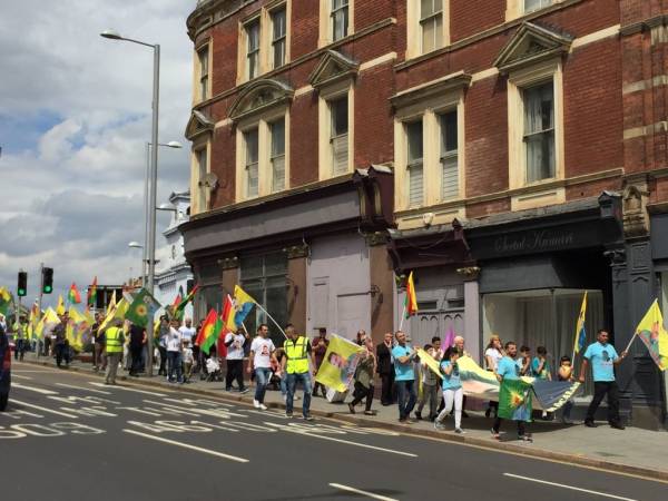 Nottingham Kürt Toplum Merkezi’nde toplanan Kürdistanlılar, Market Square’ye yürüdü. Yürüyüş boyunca bildirilerin okunduğu ve dağıtıldığı eylemde, işgalci Türk ordusunun Efrîn kantonuna yaptığı saldırılar protesto edildi.