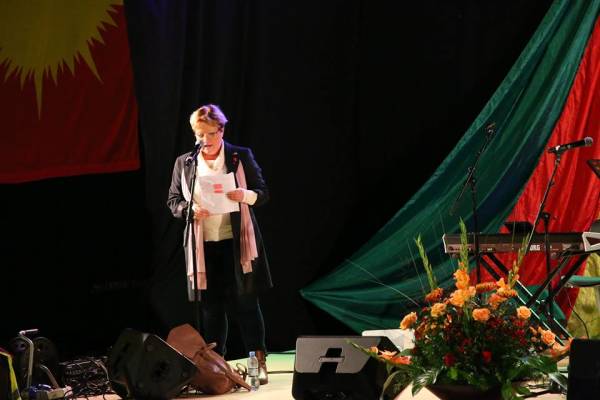 Birleşmiş Milletler Derneği Örebro-Kumla Yönetim Kurulu Üyesi Trudy Hellqvist, Kürt Halkının sadece kendisi için değil tüm insanlık için savaşcığını, YPJ/YPG savaşcılarının Rojava ve Şengal'de DAİŞ çetelerine karşı sürdürdükleri mücadeyle tüm dünyanın takdirini kazandıklarını söyledikten sonra şunları kaydetti: