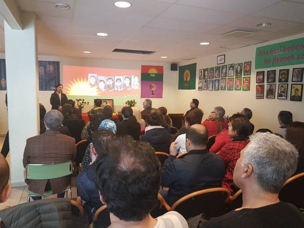 Kürt halkının başta Kuzey Kürdistan olmak üzere Kürdistan'ın dört parçasında sömürgeci güçler ve işbirlikçilerinin ağır saldırıları altında olduğunu hatırlatan konuşmacılar, tüm Kürtler ve dostlarına saldırılara karşı ortak direnişleri örgütleme çağrıları yaptılar.