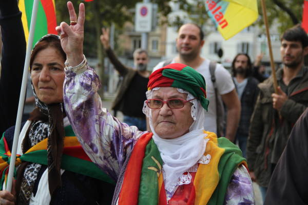 Yürüyüşte kendi renkleri ve Öcalan posterleri ile yer alan Kürdistanlılar yürüyüş boyunca attıkları sloganlarla Öcalan’a özgürlük istedi. İsviçreli sol sosyalist gruplarda attıkları sloganlar ve taşıdıkları pankartlarla Erdoğan diktatörlüğünün durdurulmasını istedi.
