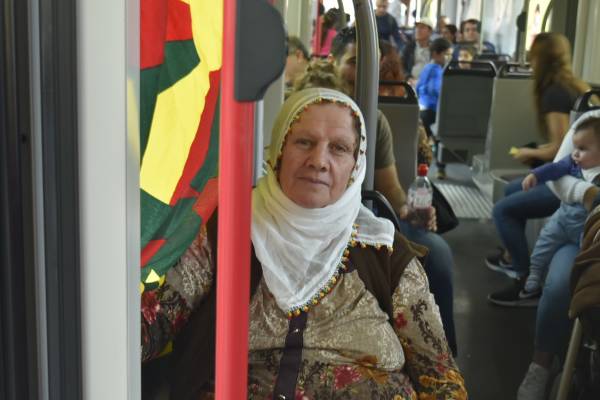 Saali tramvay durağında kendi renkleri ve Öcalan posterleri ile bir araya gelen Kürdistanlılar bindikleri tramvayı Öcalan’a özgürlük pankartı ve afişleri ile süsledi. 2 saatlik süren şehir turu boyunca Kürdistanlıların gerçekleştirdiği eylem, İsviçreliler tarafından yoğun ilgi ile karşılanarak alkışla destek verildi.