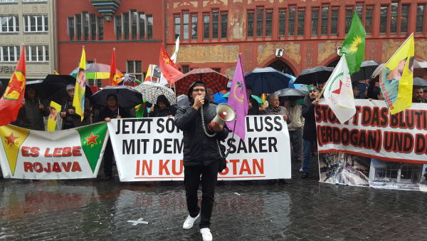 Dem Kurd Bern'in çağrısı üzerine Bern Bahnofplatz' da bir araya gelen 200 civarında Kürdistanlı, Türkiyeli ve İsviçrelinin katılımıyla sömürgeci Türk Ordusu' nun Şengal ve Rojava' yı bombalaması protesto edildi.