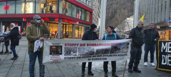 İşgalci Türk devletinin 1 Şubat gecesi Maxmur, Şengal ve Rojava'ya yönelik bombardıman saldırılarına karşı İsviçre’nin Luzern ve Chur kentlerinde protesto eylemleri düzenlendi.