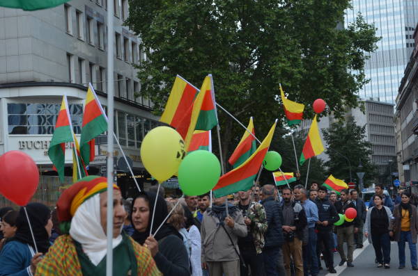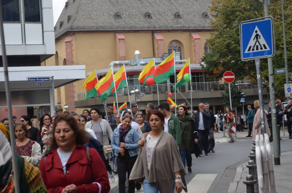 Frankfurt, Offenbach, Hanau, Giessen, Rüsselsheim ve Mainz çevresinde yaşayan Kürdistanlılar dün akşam saatlerinde Frankfurt Tren istasyonu önünde toplantı ve yürüyüşe başladı.