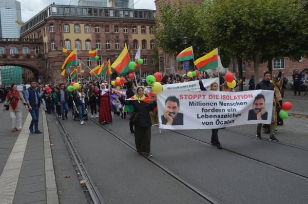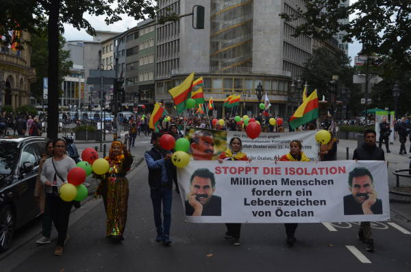 Almanya’nın Frankfurt kentinde düzenlenen Öcalan’a özgürlük eylemine çok sayıda kişi katıldı.