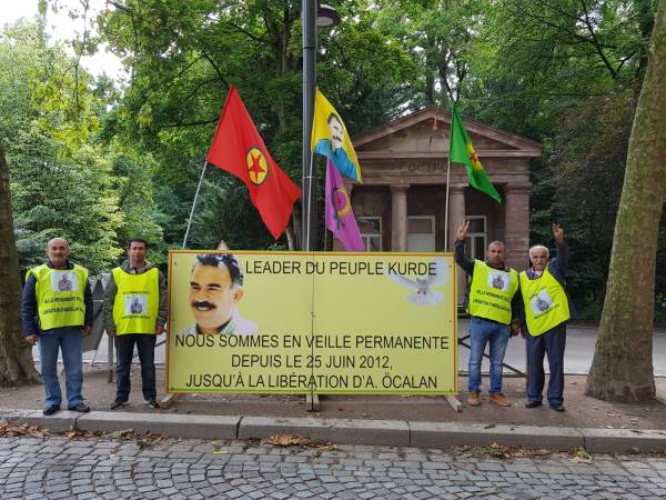 Fransa’nın Strasbourg şehrindeki Avrupa Konseyi (AK) önünde Kürt Halk Önderi Abdullah Öcalan’a özgürlük şiarıyla düzenlenen nöbet eylemi yeni katılımlarla sürdürülüyor.
