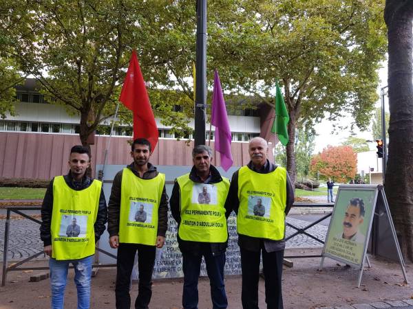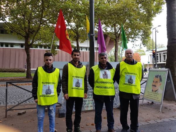 Bu haftaki nöbet eylemi, Öcalan’ın özgürlüğü için Avrupa Kürt Demokratik Toplum Kongresi (KCDK-E) ve Avrupa Kürt Kadın Hareketi (TJK-E) üyelerinin katıldığı oturma eylemiyle aynı alanda düzenleniyor.
