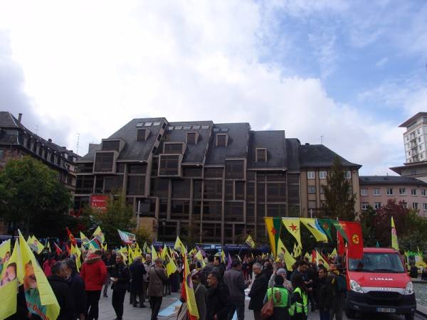 Uluslararası kuruluş ve şahsiyetlerin katılımıyla Öcalan’a Özgürlük İnisiyatifi’nin çağrısı ve KCDK-E ile bugün yüzlerce Kürdistanlı ile çok sayıda Avrupalı şahsiyet ve Kürt dostu Strasbourg’daki Place Kléber adlı meydanda toplandı. Kadınların çoğunlukta olduğu bine yakın kişinin katıldığı eylemde Öcalan’ın özgürlüğü talebine ilişkin hazırlanan pankart ve yazılamalar meydanda serilirken, eylemciler Öcalan posterlerini dalgalandırıyor.