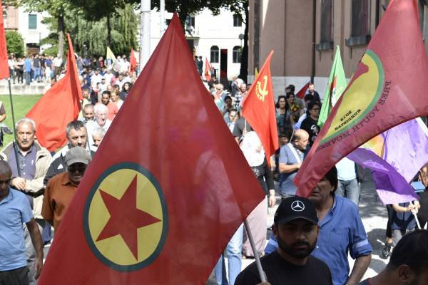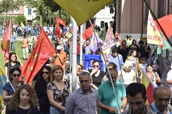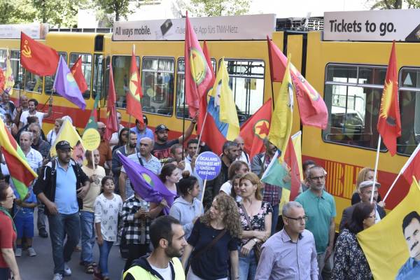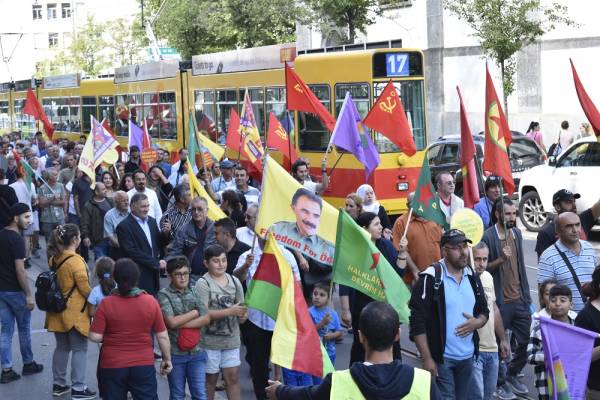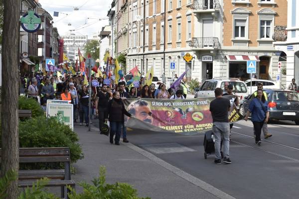 Basel Dreirosenbrükc’de bir araya gelen yüzlerce kişi buradan “Öcalan’a özgürlük” pankartı arkasında Caserne kadar bir yürüyüş gerçekleştirdi. Yürüyüş boyunca Öcalan’ın posterleri yanı sıra PKK, KCK, YPG, YPG bayrakları taşıyan kitle sık sık “Öcalan’a özgürlük”, “ Biji Serok Apo”, “Katil Erdoğan” sloganları attı.