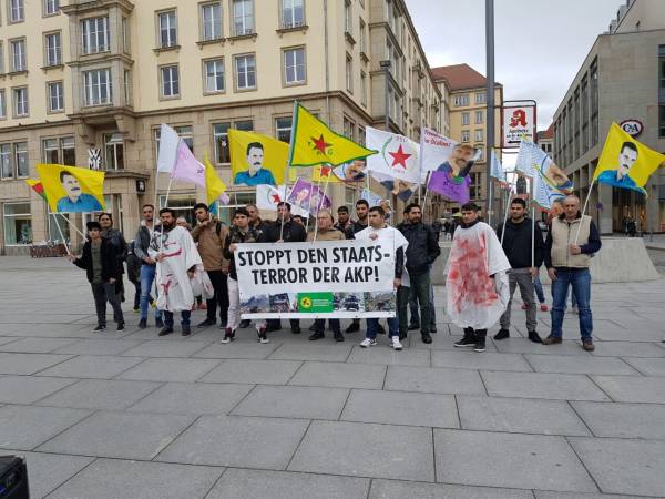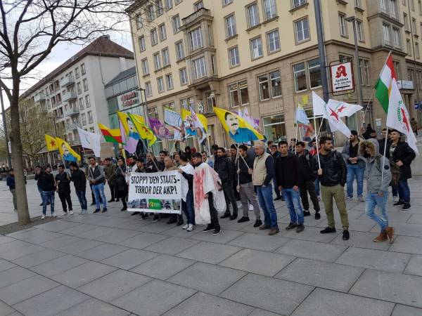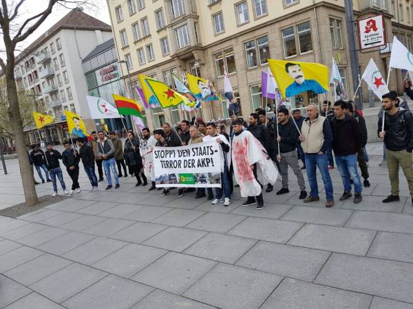 Almanya’nın Dresden kenti ve çevresinde yaşayan Kürdistanlılar da şehir merkezindeki Altmarktgalleri’nin önünde bir miting düzenleyerek hava saldırılarını protesto etti.