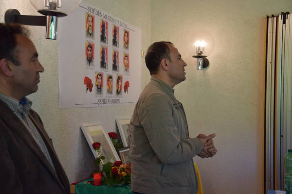 Alte Schull Strasse’de bulunan kilisede yapılan anma toplantısı hayatını kaybeden gerillalar anısına yapılan bir dakikalık saygı duruşuyla başladı. Açılış konuşmasını DKTM adına Emin Narçin yaptı. Açılış konuşmasında sonra, konuşan Avrupa Şehitler Ailesi Başkanı Bavê Hesen, “PKK yokluktan var olan, bir partidir. Bu hareketi var eden şehitlerimizin önünde saygıyla eğiliyoruz. Varlığımızı şehitlerimize borçluyuz” dedi.