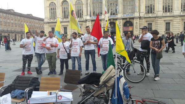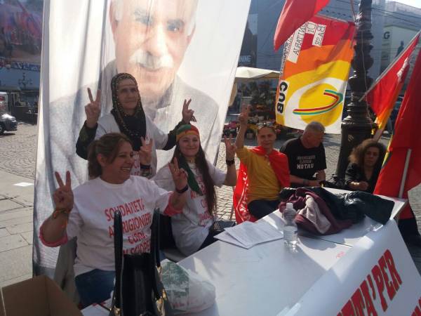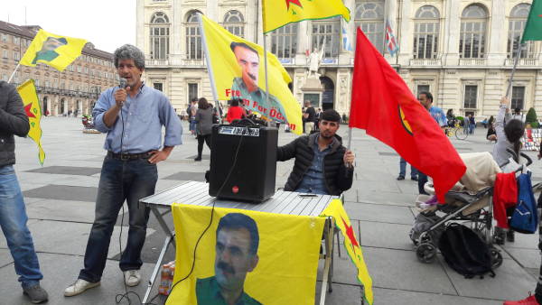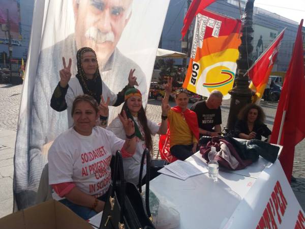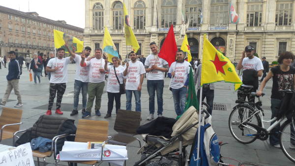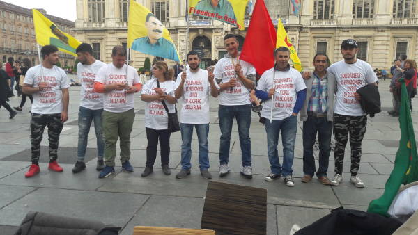 İtalya'nın Torino kentinde Piazza Castello’da Kürtler ve İtalyanların katılımıyla bugün başlayan eylem zindanlara destek amacıyla açlık grevi başlatıldı. Eylem bugün de sürecek.
