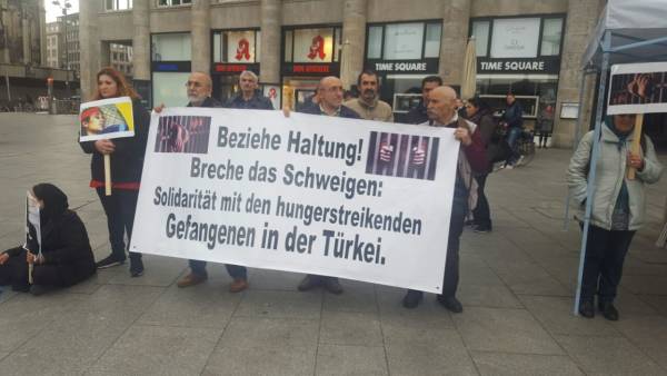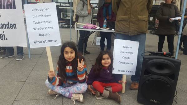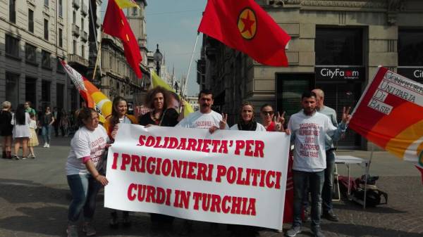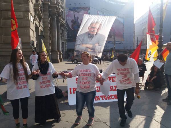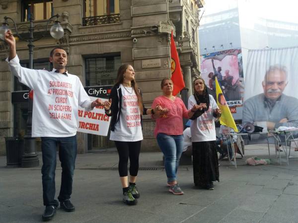 İtalya'nın Milano kentinde Piazzsa Cordusio'da açlık grevlerine dikkat çekmek amacıyla açlık grevi eylemi başlatıldı. Pazar gününe kadar devam edecek eyleme, Mikano Kürt Komitesi, Cub Milano Sendikası, Milano Anarşist Federasyonu da destek verdi. Eylemde bildiriler de dağıtıldı.