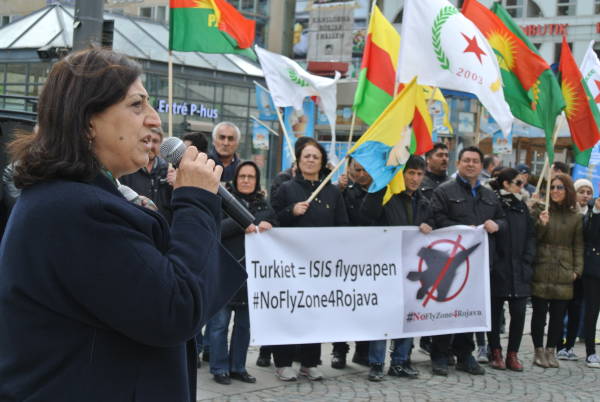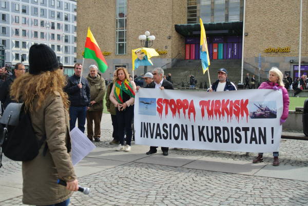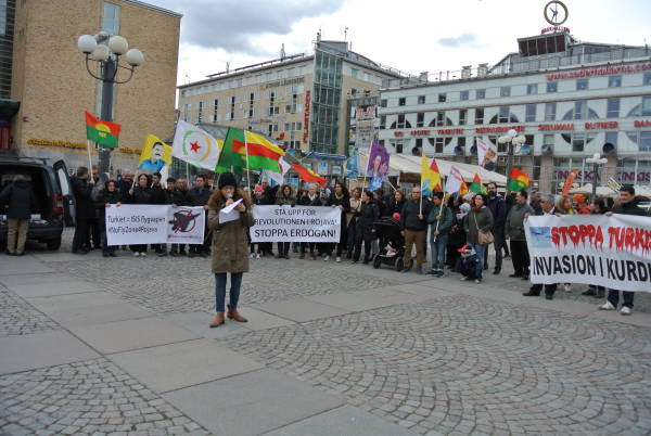 Ayşe Göktepe, İsveç Demokratik Kürt Toplum Merkezi'nin basın ve sivil toplum örgütlerine gönderdiği basın açıklamasını okudu. Açıklamada, Rakka operasyonunun sürdüğü bir dönemde Türk devletinin yaptığı bombalamaların tesadüf olmadığına ve sıkışan DAİŞ çetelerine nefes aldırma amacı taşıdığına dikkat çekilirken, uluslararası toplum ve AB'ye de Türkiye'ye karşı tutum alma çağrısı yapıldı.