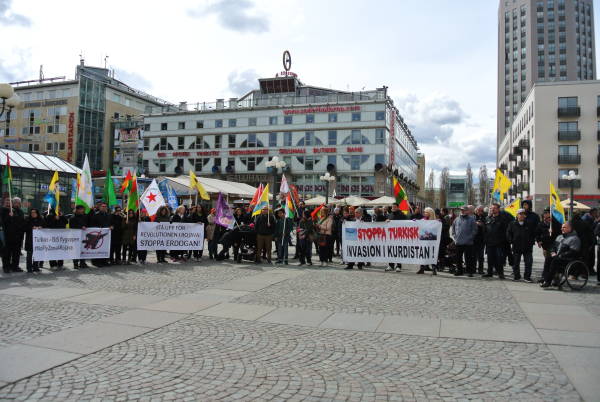 İsveç'in başkenti Stockholm'de yaşayan Kürdistanlılar ve dostları, AKP'nin soykırım saldırılarını Medborgarplatsen'de protesto etti.