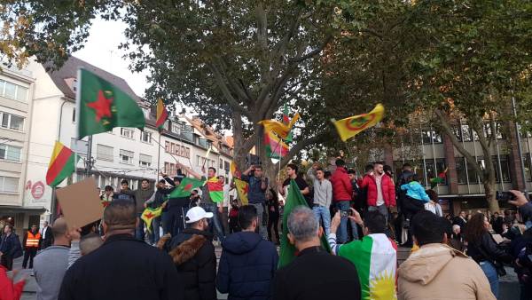 Almanya'nın Stuttgart kentinde yaşayan Kürdistanlılar ve dostları Kobanê meydanında bir araya gelerek Türk devletinin Rojava’ya yönelik işgal saldırısını protesto etti. Çoğunluğunu gençlerin oluşturduğu kalabalık kitle Türk devletinin saldırılarını kandı. Gösteri DTKM, MLKP, PARTİZAN, PYD, MLPD ve Insitiative Kurdistan isimli kurumların çağrısıyla yapıldı.