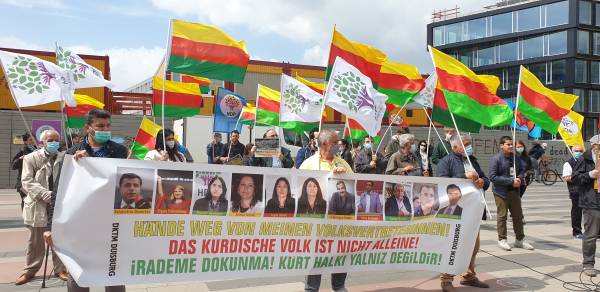 Almanya’nın Duisburg kentinde Duisburg Demokratik Kürt Toplum Merkezi tarafından tren garı önünde düzenlenen mitingde, Türk devletinin Güney Kürdistan’ın Zînî Wertê bölgesine saldırısı ve HDP’li 5 belediyeyi gasp etmesi protesto edildi.