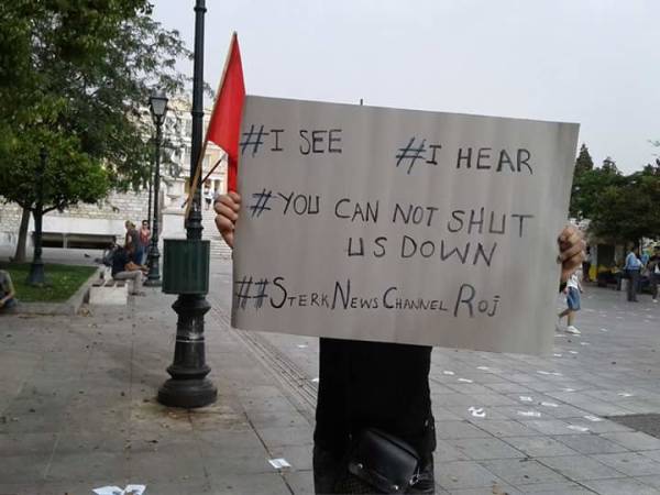 Fransız uydu şirketi Eutelsat’ın Stêrk TV, Rohahî TV ve News Channel’in yayınlarını durdurma kararı Yunanistan’ın başkenti Atina’da düzenlenen bir eylem ile protesto edildi.