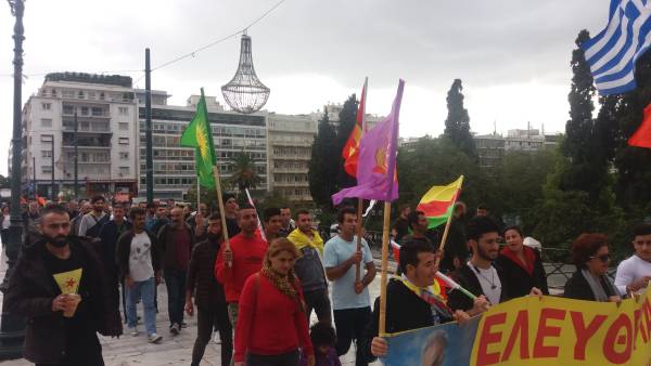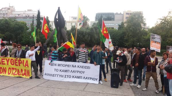 Yunan devletinin Yunanistan’da kalan Kürdistanlı mültecilerin barındığı Lavrion kampını kapatmasını protesto etti.