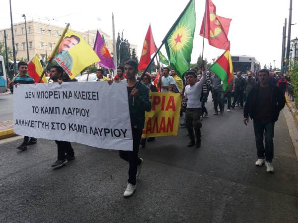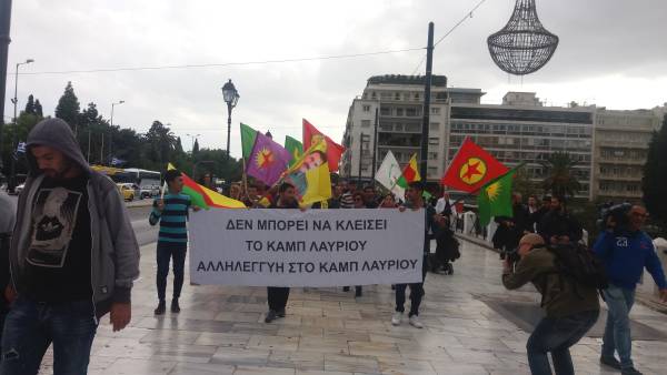 Yunanlı grup ve partilerin de destek verdiği eylemde sık sık "Lavrion kampı yalnız değildir", "Faşizme karşı omuz omuza", "Lavrion kapatılamaz" sloganları atıldı.