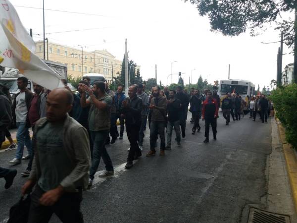 Syntagma Meydanı’nda toplanan eylemciler Mülteci Bakanlığının bulunduğu binaya kadar yürüdü. Burada yapılan basın açıklamasından sonra kitle oturma eylemine geçti.
