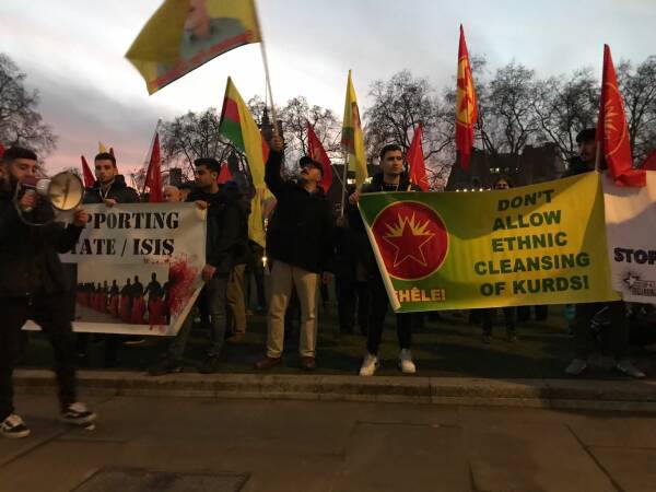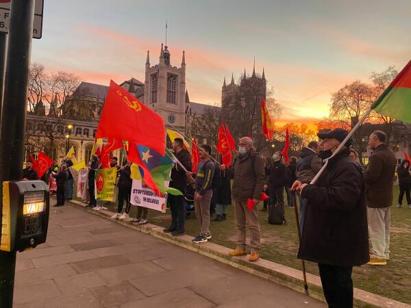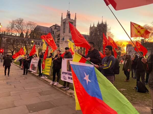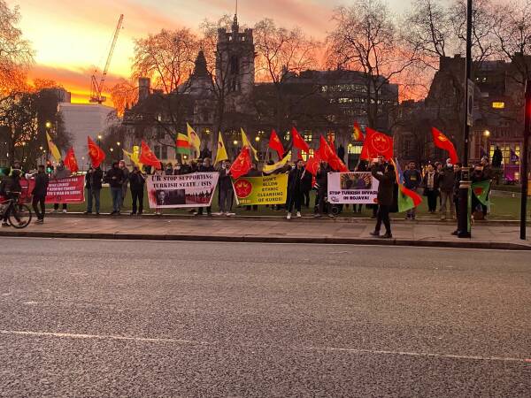 Kürt Halk Meclisi’nin çağrısı ile Londra Parlamentosu önünde bir araya gelen Kürdistanlılar ve enternasyonal gruplar, Türk devletinin Derîk, Mexmûr ve Şengal’e eş zamanlı saldırılarını protesto etti.