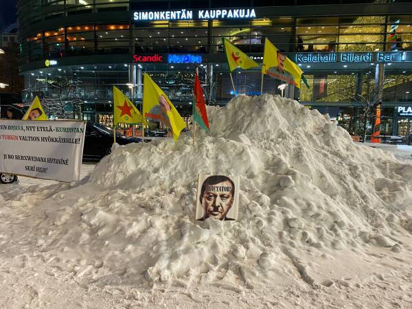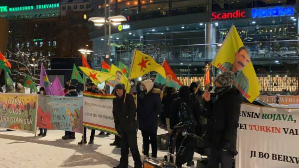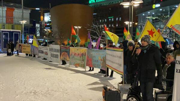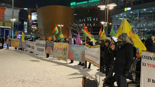 Başkent Helsinki merkezinde bir araya gelen Kürtler ve dostları, Türk devletini protesto etti.