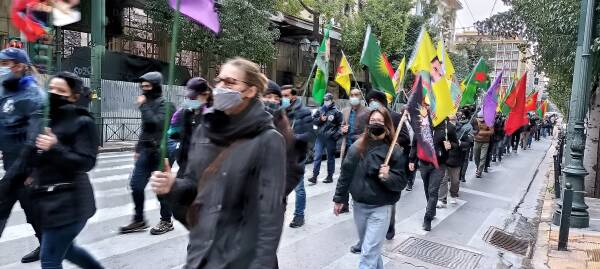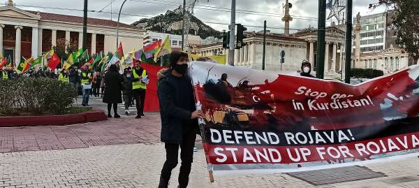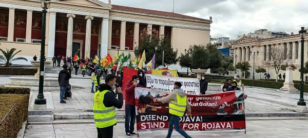 Yunanistan'ın başkenti Atina'da Türk devletinin soykırım saldırıları yapılan basın açıklaması ve yürüyüş ile kınandı. Yürüyüşe yüzlerce Kürdistanlı katıldı. Saldırılara yönelik Yunanca bildiriler dağıtıldı. Yürüyüş esnasında sık sık “Bijî Serok Apo”, “Katil Erdoğan”, “Faşist Erdoğan”, “Şehîd namirin” sloganları atıldı.