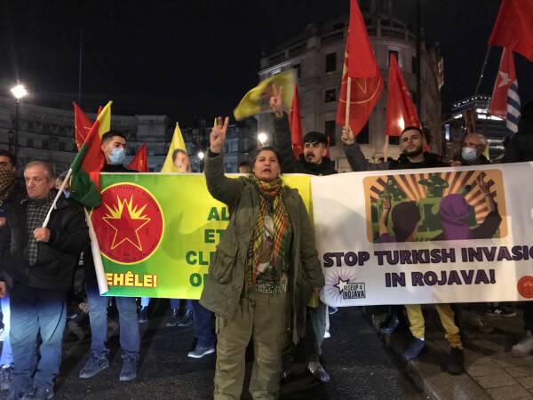 Belçika’nın başkenti Brüksel’de Türk Konsolosluğu önünde bir araya gelen Kürdistanlılar, Türk devletini protesto etti. Konsolosluk önünde “Bijî berxwedana Şengalê”, “Bijî berxwedana Maxmurê, “Bijî berxwedana Rojava” sloganları susmadı.