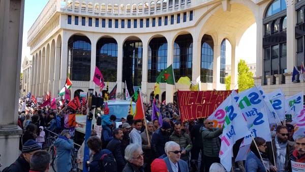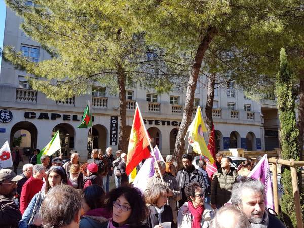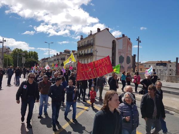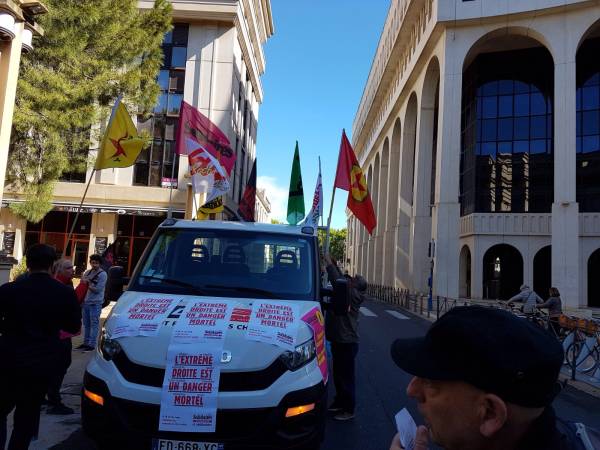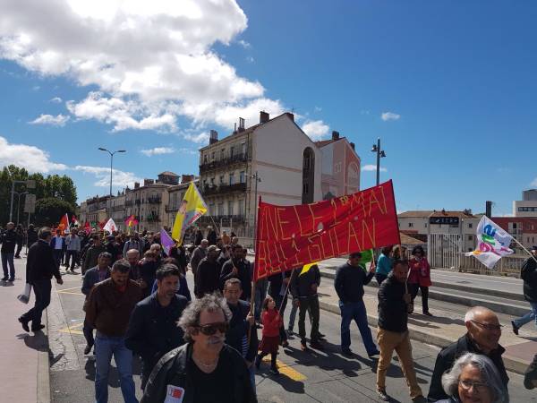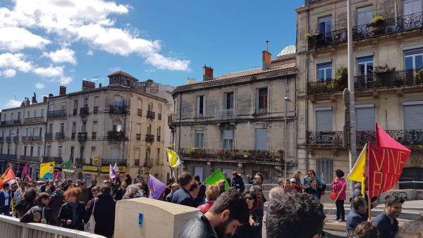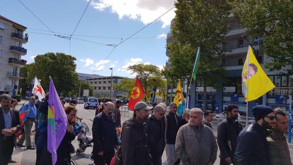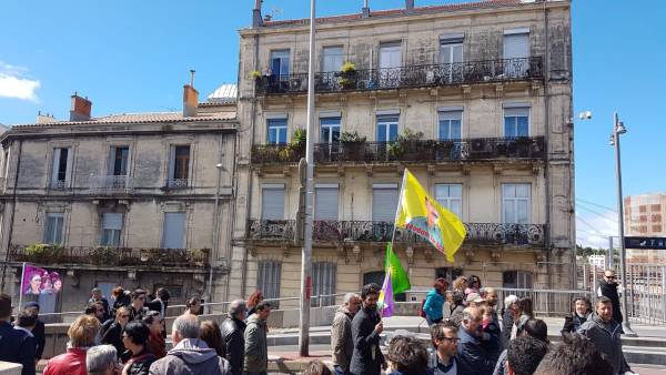 Fransız sendikalarınca organize edilen yürüyüşe Montpellier'de yaşayan Kürtler de katıldı. Türk devletinin talebi üzerine Eutelsat uydusu tarafından üç Kürt televizyonunun kapatılma kararı da eylemde protesto edildi. Fransız kurumlar da Kürtlerle dayanışma içinde olduğunu ifade ederek, "Ne gerekiyorsa yapacağız" dedi.