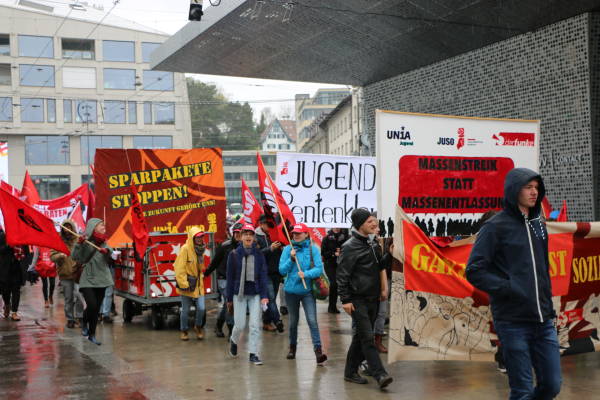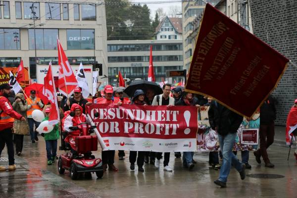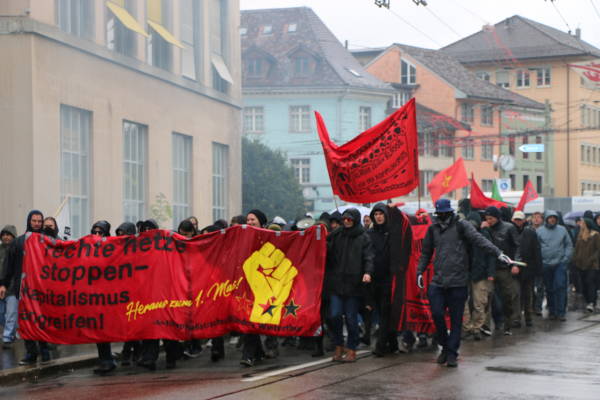 Zürih, Basel, Bern başta olmak üzere onlarca merkezde alanlara çıkan işçi ve emekçiler, taşıdıkları pankart ve dövizlerle dünya genelinde gün geçtikçe büyüyen aşırı sağa dikkat çekerek, emekçilerin haklarının korunmasını istedi.