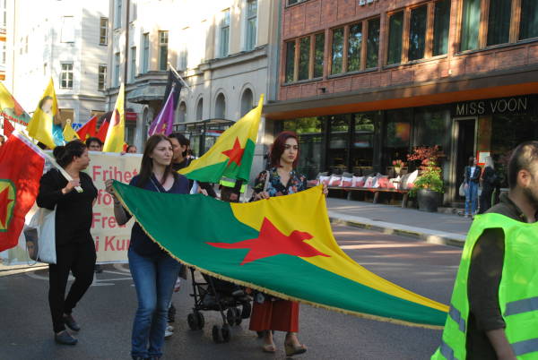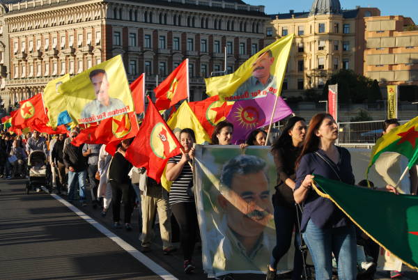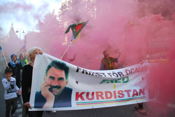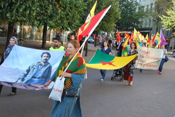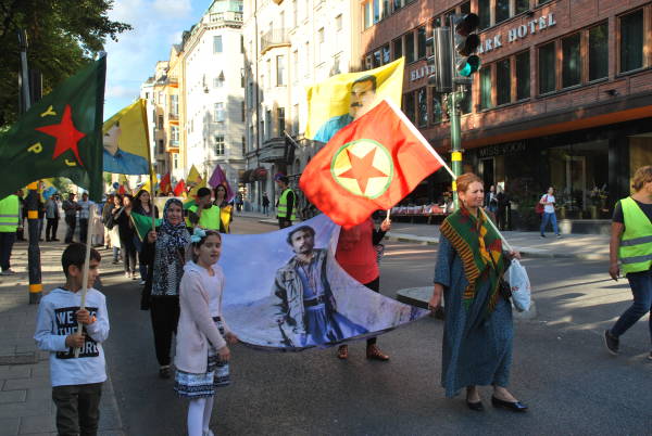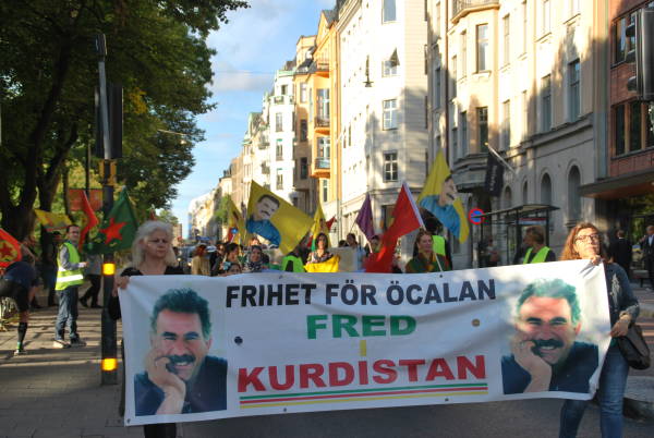 Dün saat 18.00 sularında Stockholm'un Humlegården Parkı'nda bir araya gelen Kürdistanlılar, “Öcalan'a özgürlük, Kürdistan'a barış” pankartı, Öcalan'ın poster ve flamaları, PKK, KCK, YPG/YPJ barakları taşıyarak parlamento binasına doğru yürüyüşe geçti.