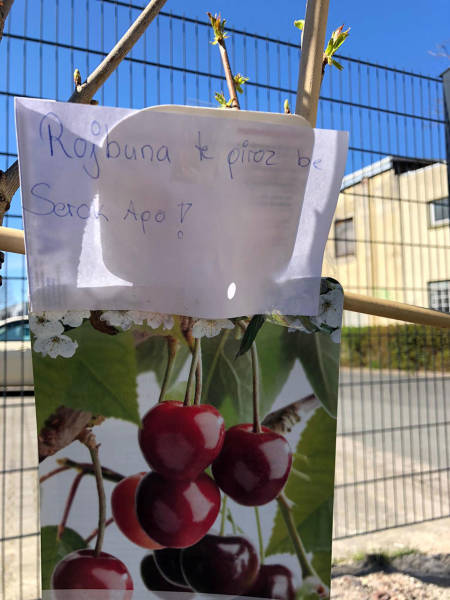 Rocca di Papa mülteci kampındaki Kürdistanlılar da “Rojbüna Rêber Apo li tevahî mirovahîyê piroz bê”, “Rojbuna Rêber Abdullah Ocalan rojbuna gelê bindeste”, “Rojbüna Rêber Apo rojbuna jinê yê”, “Rojbuna te pîroz bê ey Serok Öcalan” yazılı dövizler taşıyarak, kamp bahçesine fidan dikti.