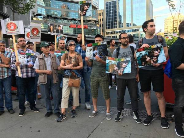 Kanada’nın Toronto şehrinde Öcalan üzerindeki tecrit ve Efrîn’e işgal etmek isteyen sömürgeci güçler protesto edildi.
