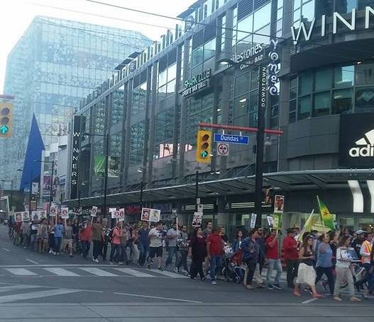 Yonge&Bloorda toplanan eylemciler Yonge &Dundasa’ya kadar yürüdü.