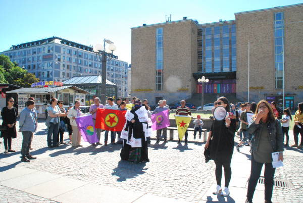 Sara Kadın Birliği, Amara Kürt Kadın Meclisi ve Stockholm Demokratik Kürt Toplum Merkezi’nin çağrısıyla Medborgarplatsen Meydanı’nda gerçekleşen Şengal eyleminde, basın açıklaması okundu.