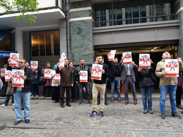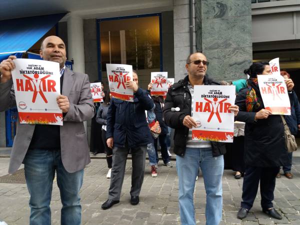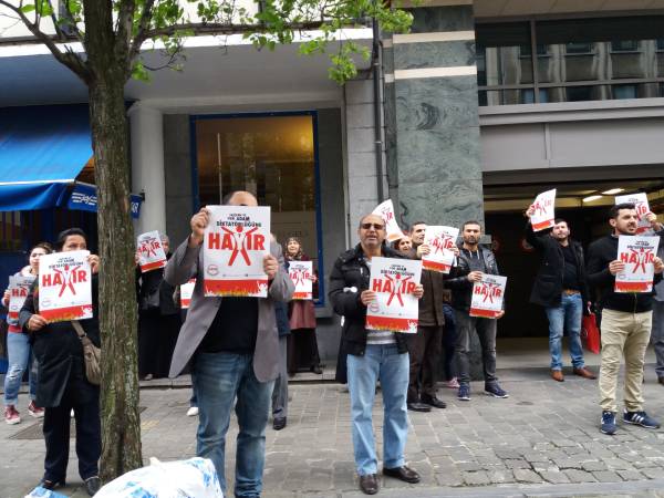 Belçika’nın başkenti Brüksel’de 'Hayır Platformu’nun çağrısı ile Brüksel Türk konsolosluğunun önünde Cuma günü Saat 16:00’da bir araya gelen kitle “hayır daha bitmedi mücadeleye devam” dedi.