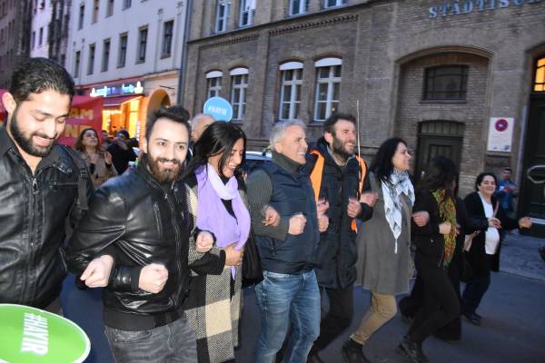 Almanya’nın başkenti Berlin’de HDK Berlin’in organize ettiği “Hayır bitmedi daha yeni başlıyor” yürüyüşüne aralarında NAV-DEM Berlin, Haziran Hareketi ve Berlin’de faaliyet yürüten çeşitli sol, devrimci ve demokrat grupların yanı sıra binlerce kişi katıldı.