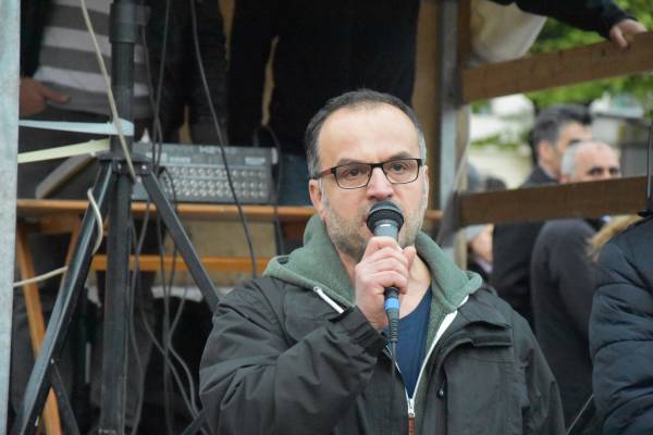 “Na Platformu” öncülüğünde düzenlenen mitingde Türk devletinin referandumdaki hileleri protesto etmek amacıyla pankartlar taşındı.