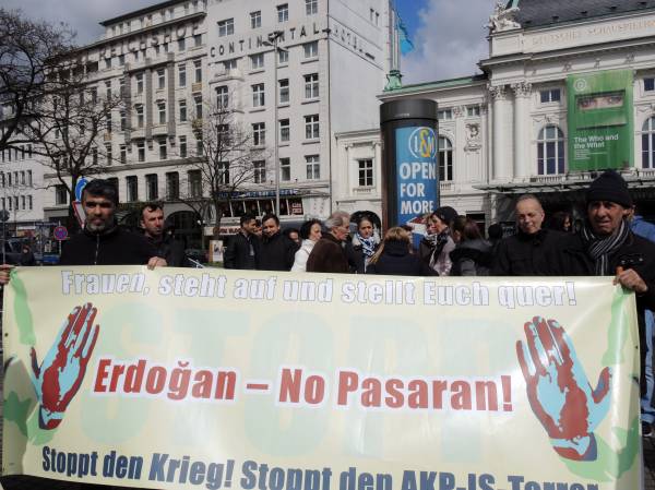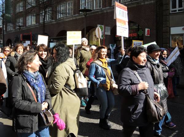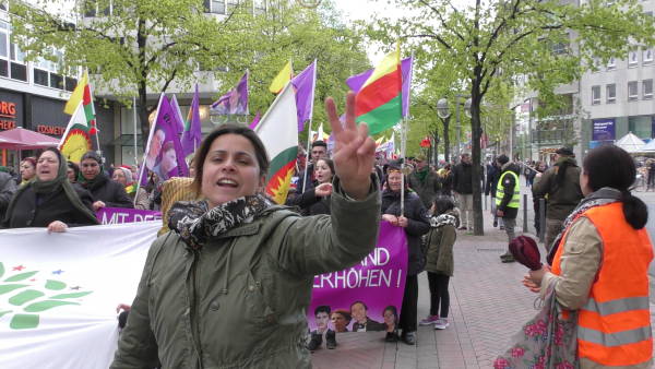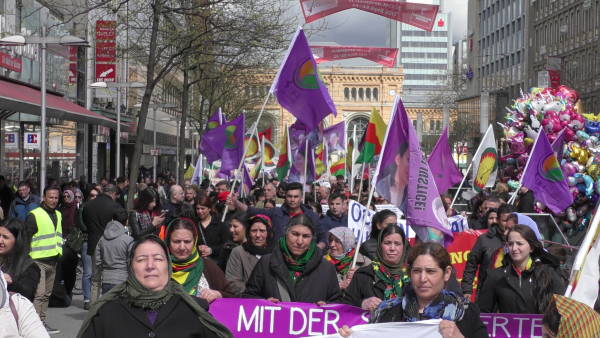 Hamburg Hayır Platformu’nun çağrısıyla Hachmannplatz’da bir araya gelen Kürdistanlı ve dostları Mönckebergstrasse’ye kadar yürüdü.