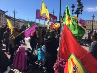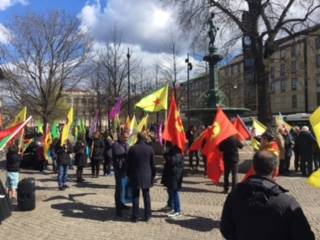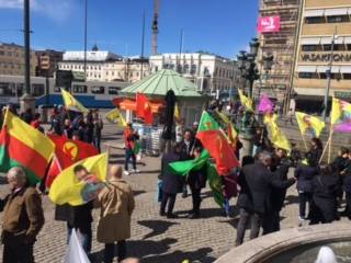 Göteborg Demokratik Kürt Toplum Merkezi adına yapılan konuşmada, Rojava ve Kuzey Kürdistan'da Kürt halkının kazanımları karşısında paniğe kapılan AKP hükümetinin kirli savaşı daha da tırmandırmak için ırkçı ve faşist MHP ile ittifak yaptığı, Kürtlere yönelik soykırım operasyonları ve tutuklamaları yoğunlaştırdığı belirtildikten sonra şunlar kaydedildi: