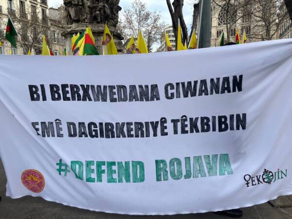 Medya Savunma Alanları’nda gerilla direniyor. Rojava’da çocuk, genç, yaşlı, bütün halkımız QSD öncülüğünde direniyor. Bakur’da gasp edilen belediyelerimize karşı halkımız direniyor. Önder Apo, ona dayatılan bütün imha ve tecrit konseptlerini parçalayıp hepimize tarihi bir direnişin nasıl yapıldığını gösterdi. Bugün artık sıra bizdedir. Kürdistan’ın her parçasına güç verecek, Önder Apo’nun elini masada güçlendirecek bir direniş sergilemeliyiz. Rojava’nın kaderi Avrupa ve Amerika’dan bağımsız değildir. Ve halkların kaderini belirleyen, yine halkların direnişidir. Gün, kazanımlara daha güçlü sahip çıkma günüdür; direnişi yükseltme, Reber Apo’yu özgürleştirme, Rojava’yı koruma günüdür.”